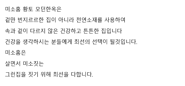 ¹Ì¼ÒȨÀº ȲÅ䡤½¡¡¤³ª¹« µî ÀÚ¿¬¼ÒÀç·Î °Ç°ÇÏ°í Æ°Æ°ÇÑ Ä£È¯°æ ÁýÀ» Áþ°í À¯Áö¡¤°ü¸®ÇÕ´Ï´Ù.